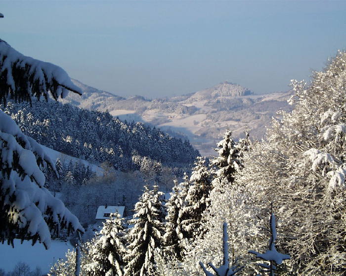 Die Straße führt weiter hinauf zu den Höhenhöfen auf ,,Buchen" und von höhergelegenen Stellen hat man bei gutem Wetter die Aussicht in den mittleren Schwarzwald bis zu den Vogesen.